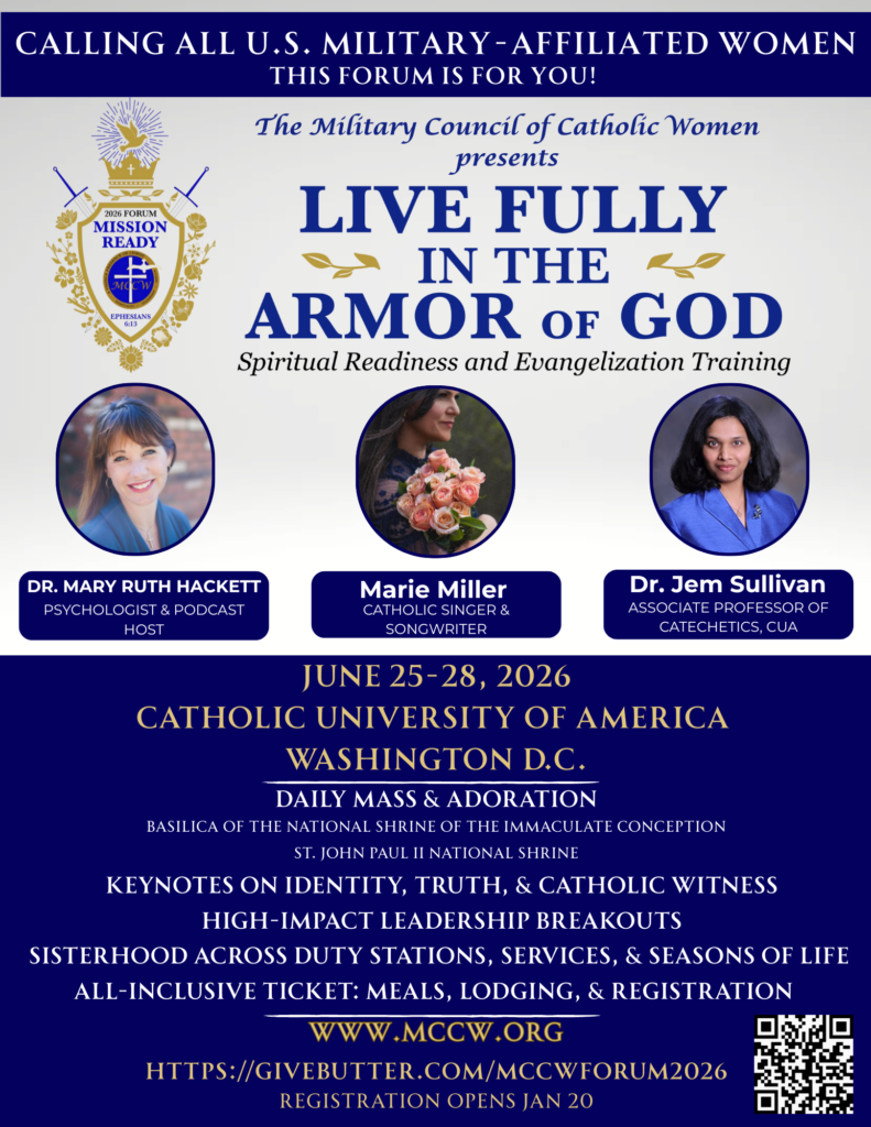 The MCCW Forum is our marquee event—a powerful, multi-day experience that brings together Catholic US military-affiliated women from across the world.